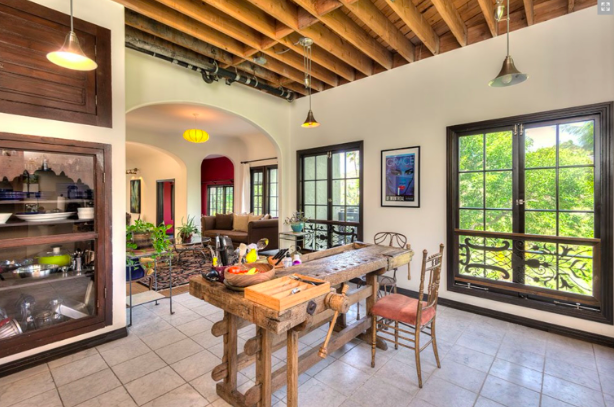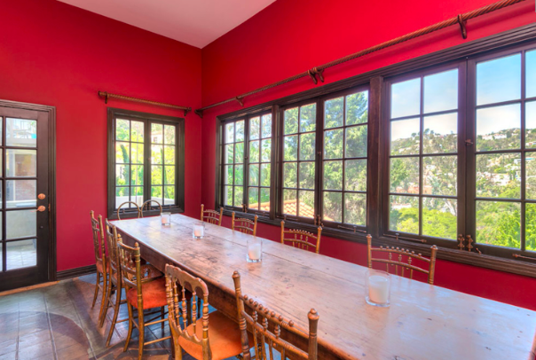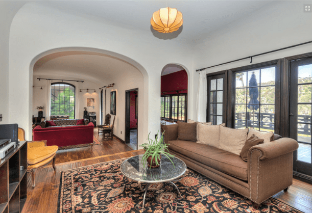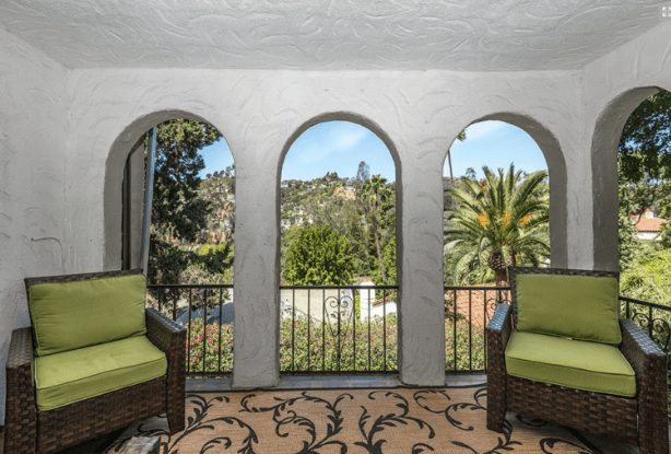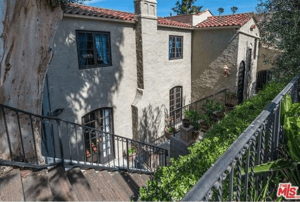6680 Whitley Terrace was built in 1924 by architects Lee & Scott for owner and real estate developer Louis H. Kreke. The two story Mediterranean home sits on a downslope on Whitley Terrace, which consists of 3,600 square feet with 4 bedrooms and 4 bathrooms. The main level consists of a common area in an open floor plan: kitchen, den, living and dining room, while 3 bedrooms and 2 baths, including the master suite, complete the upper level. The lower level houses a guest suite, with a living and dining room, full kitchen, a bedroom suite, and private patio. The lower suite has its own separate entrance. Below is the rear of the property with a stairway which leads to the entrance of the lower floor.