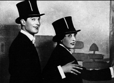 French singer and actor Maurice Chevalier was contracted to come to the United States in 1928 via Paramount Pictures. According to a 1930 Federal Census, he had lived here in 1930, although was known to stay at different hotels. Chevalier was born in the poor section of Paris in 1888 and his father died when he was 11 years old. His mother thought he was burden to the younger nine children so Maurice tried work at many trades, but always got fired. He then went into the circus as an acrobat, but had an accident which ended his career. He then joined a musical group at a cafe and then a chance encounter with nightclub singer Mistinguett helped his success as the two became a popular act in the Folies-Bergere, as pictured below. She was 36 and he was 23 as they had a very public romantic affair. Actually, Chevalier was known to be a “ladies man”-in 1909, he became the partner of the biggest female star in France, Fréhel. However, due to her alcoholism and drug addiction, their relationship ended in 1911.