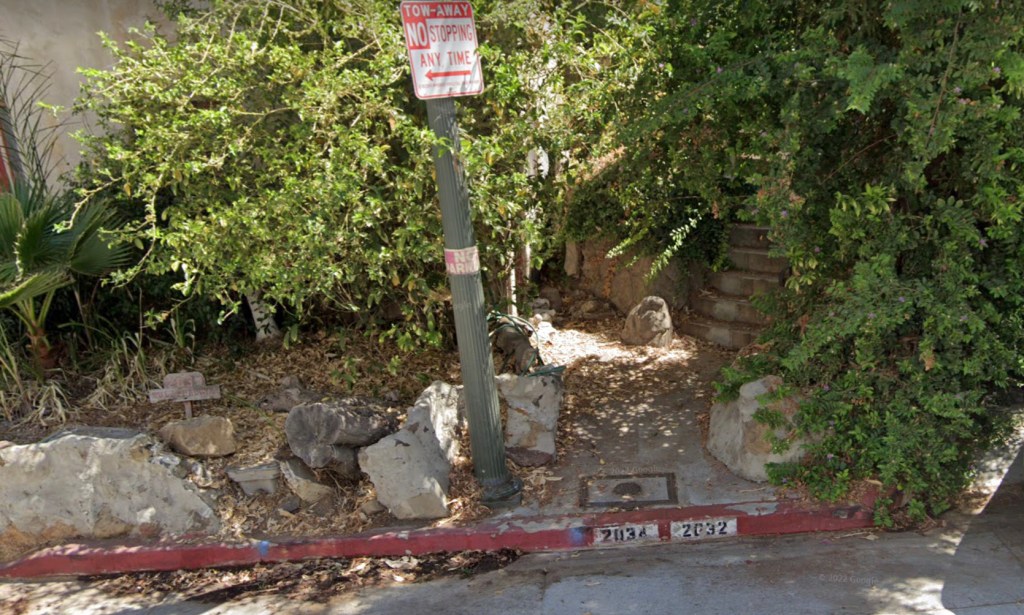 A walkway up to this property is on the right of 2034 N. Las Palmas Avenue as seen below: