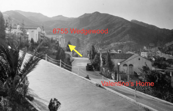 6755 Wedgewood Place was built in 1921. The original owner and architect is unknown as the original permit could not be located after a thorough search. Actor Knute Erickson rented the home in 1927. Erickson was a Whitley Heights fan as he also lived at the following residences: 6515 Milner Court (1922-1924), 6630 Whitley Terrace (1924), and 6610 Iris Drive (1930). Below is 6755 Wedgewood Place in the 1920s as Valentino’s residence was across the street on Wedgewood Place.