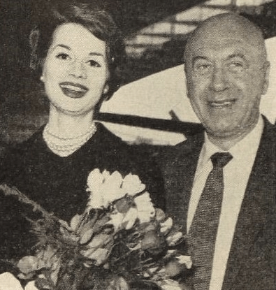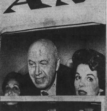 In 1951, Preminger’s dating slowed down and by the end of the year, he married artist Mary Gardner. A few years later in 1954, Preminger would have a very taboo affair with actress Dorothy Dandridge while they filmed Carmen Jones together. The secret affair would go on for approximately four years. Preminger would tell her how to act, what to wear, and what movies she should star in. An offer was made to Dandridge for the featured role of Tuptim in “The King and I” (1956). Preminger advised her to turn it down, as he believed it unworthy of her. She later regretted taking his advice. In October of 1956, Gardner announced that she was seeking a divorce. In December of 1957, Gardner filed for divorce citing “cruel and inhuman conduct” and claimed Preminger had relations with three other women. Surprisingly, Dandridge was not named in the lawsuit. However, costume designer, Hope Bryce, was the first name. Gardner alleged that Preminger was having an affair with Bryce for the past three years. (Preminger would marry Bryce when his divorce became final). The other two women were London models who Preminger stayed with at a London hotel on two different occasions. Below is Preminger and Bryce in July of 1959, when they were forced to make an emergency landing on a Pan Am flight into New York.