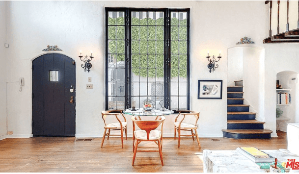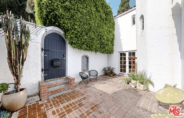 There is a secluded courtyard that is surrounded by a wall where the front door to the residence is located.