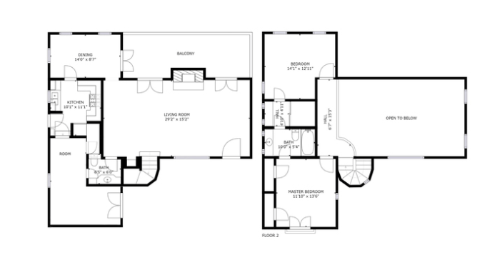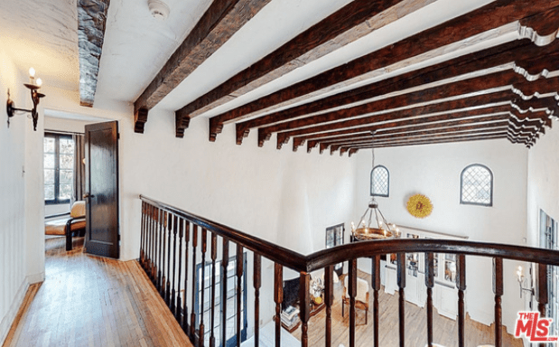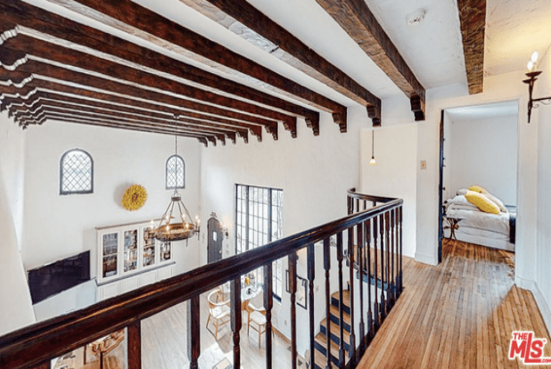 Stairs going up to the second floor leads to a balcony that leads to two bedrooms and one bathroom.
