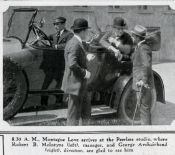 The house is one of the smaller homes in the area, but that did not bother MGM casting director Robert B. McIntyre who resided in the home from 1929 ,in which he had relocated to Hollywood from New York, until his death in 1952. McIntyre had just divorced actress Marion Grey and moved to Whitley Heights with his mother, Isabella Wiener. McIntyre who was born in Philadelphia in 1882, started his career at the World Film Company circa 1920 where he discovered actress Eleanor Boardman (another Whitley Heights native) and a ton of other actors. Below, McIntyre is on the right, during his days at World Film Company.