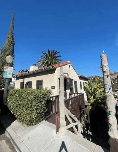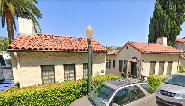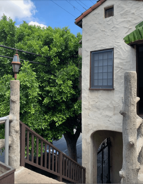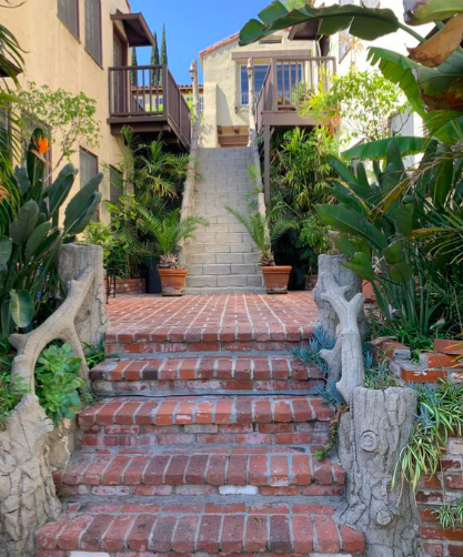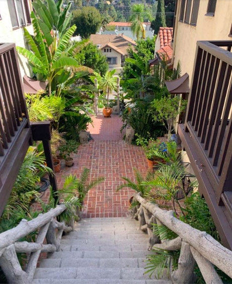 Below, the stairs between the two buildings go straight up to Iris Circle where 6861 Iris Circle can be seen at the top of the photograph, where Carole Lombard and William Powell once lived after they were married.