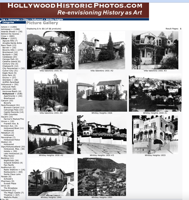 Upon finding a great website called Hollywood Historic Photos in my quest to find information about Whitley Heights, I found 11 photographs under its own section. Three of the houses under the section were not familiar and must have been demolished for the freeway construction. The first house in the photograph above caught my eye as I began to research and find out what happened to the house. The caption underneath the photo read: Residential area torn down to make way for the Hollywood 101 Freeway in 1954. Studying the background of the house did not prove to be familiar as the house was on a downslope with another residence right above it. I thought this might have been located on Fairfield Avenue or perhaps near Bette Davis’ former house on Alta Loma Drive. I began searching over aerial photographs of Hollywood and still no luck.