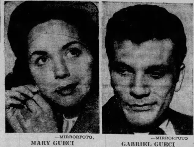 On July 23, 1949, according to Mary Catherine’s mother, Leona, she went missing and had to file a police report. The police found Mary Catherine at 2037 High Tower Road, two weeks later, now married to 18 year old Gabriel Gueci. The two eloped on July 22 in Las Vegas while Mrs. Gueci and a younger brother were in attendance. Mrs. Gueci thought Mary Catherine had written permission to marry her son and was not aware she had recently been acquitted from her father’s murder. Leona wanted the young couple to get an annulment, but Mrs. Gueci indicated she would oppose it. Several weeks after the wedding, Mary Catherine got arrested for trying to steal a dress out of a department store. Mary Catherine sobbed, “We haven’t any money and I like pretty things. I’m used to pretty things. I have always had them.” Mary Catherine, would not inherit anything from her deceased father until she was 21. Both set of parents kicked them out of their houses so the young couple was renting a room in Sherman Oaks and had trouble paying the rent. Mary Catherine had to sit in jail because they could not afford the $500 bail.