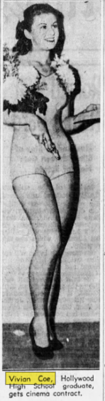 Vivian Irene Coe was born in 1920, the last of the Coe children. Vivian was also involved in the entertainment industry as a child and was most likely one of the children that got molested by Lane. In 1937, Vivian was a runner-up in Long Beach Queen of Queen’s bathing beauty contest. One month later, the 18 year old won another beauty contest and was awarded with a 7 year contract with Warner Brothers Movie Studio.