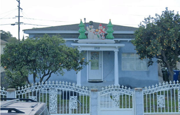 About the same time 6515-6517 Bella Vista Way was being built, E.T. Todd was building an 8 room double bungalow with a detached garage directly across the street located at 6516-6518 Bella Vista Way on lot 16. The “artistic” bungalow was finished in old ivory. In 1930 stage actor, turned movie actor James Harrison lived on one side of the bungalow. Harrison began his movie career in 1911 and his credited for 143 roles. He is best known for Charlie’s Aunt (1925) and in the 1950s, starred in tv shows such as The Lone Ranger, The Gene Autry Show, and The Cisco Kid. In October of 1950, Ira Hawthorne bought the house and moved it to 600 E. 117th Street but in the 1970s, that section of 117th Street was torn down to build the Century Freeway.