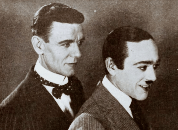 Edward J. Flanagan, born in St. Louis in 1880, was an actor who started in vaudeville and then transitioned to silent film after moving to Hollywood in the 1920s. He met his wife, Charlotte Rix Ravenscroft while traveling as she also acted, sang, and played the violin in the same circuit. They married in New Orleans in 1907. Charlotte, who was born in 1872 in Michigan, was first married to a another stage actor and singer named Horace Ravenscroft in 1897 and they had a daughter named Hortense who was born in 1899. Horace died a few years later in 1902 in Brooklyn, NY. When Flanagan was not working with his wife, he teamed up with actor Neely Edwards, billed as “Flanagan and Edwards, the Rollicking Twosome”. In 1919 and 1920 the pair appeared in silent comedies together (The Hallroom Boys and other series). The duo, pictured below, depicted a pair of New York bums both on stage and in silent film.