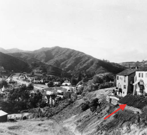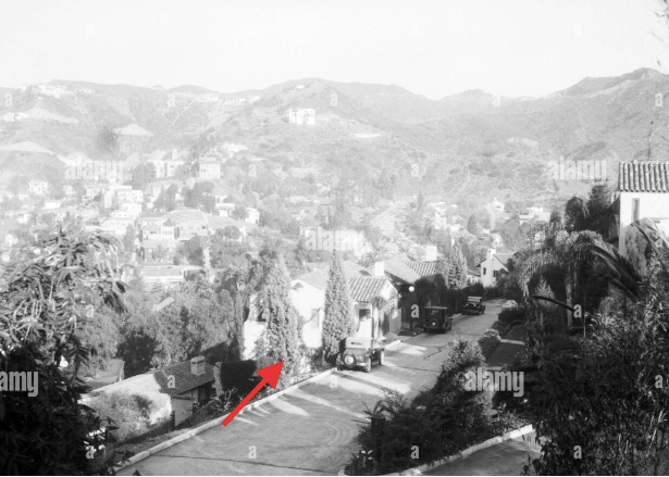 6734 Wedgewood Place was built in 1922 by architect Arthur S. Barnes for actor Edward J. Flanagan and his family. The 2-story Mediterranean home sits on a downslope, consists of 2,499 square feet with 3 bedrooms and 3 bathrooms. The home has a mission style roof, an enclosed patio entry into the home, a basement, and French doors and windows. Below are some rear view photos of the home and the Cahuenga Pass area after it was build in the 1920s.