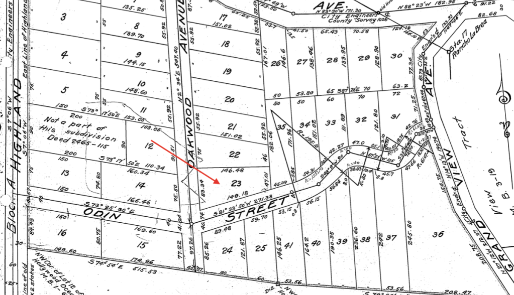 2200 Fairfield Avenue was built in 1923 by a retired widow named Peter Vandermeid who moved from San Francisco with his daughter, Frances to settle in Whitley Heights. He had the one story, six room bungalow built on the southeast corner of Fairfield Avenue (formerly Oakwood Avenue) and Odin Street on lot 23 of Lockland Tract just off of Highland Avenue and Cahuenga Boulevard.