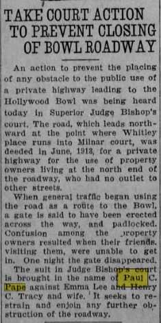 6758 Milner Road was built in 1923 by architect and owner Paul Pape. Pape was a well known Los Angeles architect who started building bungalow houses in the early 1900s and then transitioned to fireproof buildings all over Los Angeles. Pape was responsible for the designs of the Los Angeles Brewing Company, Palatial Apartments (1910), Hotel St. Francis in San Francisco (1910), Rex Arms Apartments (1912), and John Muir High School (1926). He also designed the bleachers at Hollywood High School and Franklin High School, a bank, and a sanitarium in Culver City. In 1921, Pape was on a jury trial against a couple who violated the 18th Amendment (Prohibition) and was excused as he spoke out against the amendment. He also sued a couple in 1928 in regards to the road leading to the Hollywood Bowl.