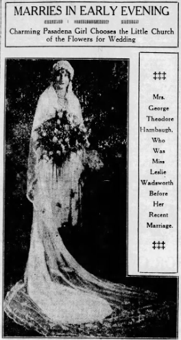 This was George’s second marriage. He was first married in June of 1928 to Leslie Wadsworth who had just graduated from Pasadena High School and barely 18 years old. At the time, George was a student at USC and involved with Delta Phi Delta Fraternity and 21 years old at the time. In 1929, their daughter Leslie Leone Hambaugh was born with their son, George Jr. was born in 1932. Perhaps they married too young but it did not last as they split up soon after George Jr. was born.