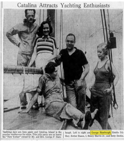 George and Estelle’s marriage seemed to last longer than Leslie’s two failed marriages. George was president of the New Mexico Exploration Company of Los Angeles and was able to buy a 42 foot boat called the “O-Kay” in 1935. George and Estelle would go boating frequently. George would later open the Hambaugh Realty Company and make real estate investments also over California. However, George may have not been the smartest businessman. In 1942, he had a $1,000 judgement against him by Albert E. Murray in San Francisco. In 1945, George pled guilty for grand theft and criminal conspiracy for selling land that he claimed had oil on it. So George was forced to sell his boat a few years later.
