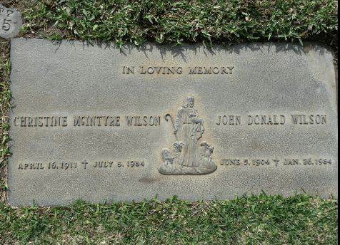 Less than a year later, Wilson married actress Christine McIntyre. The two met on the set of the television show, “Mark Saber” in 1952. Wilson was the producer and McIntyre had a minor role on one of the episodes. McIntyre was best known for her roles in the Three Stooges short films. After the two fell in love and married, both retired from the entertainment industry and got into real estate, spending the next 30 years working together. Wilson died in January 1984, and Christine McIntyre followed him only six months later, dying of cancer on July 8, 1984, in Van Nuys, California. They are buried together at Holy Cross Cemetery in Culver City.