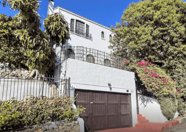 6657 Emmet Terrace was built in 1926 by architect E.G. Lindsay with 2,072 square feet and three bedrooms and two bathrooms. The Mediterranean house sits on an upslope on Emmet Terrace with a Mission tile roof and arched windows. The kitchen was remodeled in 1969 and the chimney repaired in 1979 to meet new building codes.
