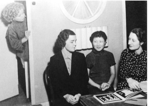 While Darr and Paula were residing at 2116 Fairfield Avenue, Darr was writing editorials about movie reviews and about the lives of different movie stars for the Daily News. Paula followed in her mother’s footsteps and became Shirley Temple’s French teacher. Below is Shirley Temple with her English teacher, Chinese Teacher, and Walling, her French teacher during the filming of “Stowaway” in 1936. Paula once described Shirley Temple as a “vocabulary wizard”. After that job was finished, Walling became a dialogue director for the movie, “The Southerner” (Jean Renoir was the director and owned his own production company). A year later, Walling was the dialogue director for “The Diary of a Chambermaid” starring Paulette Goddard and Burgess Meredith. Once again, Renoir directed the film. Finally, in 1947, Walling was the dialogue director for “The Woman on the Beach” starring Joan Bennett with Renoir directing.