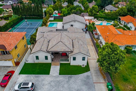 2116 Fairfield Avenue was moved to 22913 Burbank Boulevard, Woodland Hills in 1950. By observing the photograph above, the house may have been placed where the original entry is on the left side of the property and one that was on the east side of the home, is now in the front. In 2015, an addition was built to add a bedroom, family room, laundry room, and bathroom to the rear of house. The pool was added in 2017.