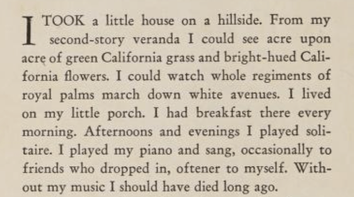 Between 1929 and 1931, actress Marie Dressler rented the home with her maid, Mamie E. Cox and chauffeur, Jerry Cox. Dressler had been staying at the Ambassador Hotel while she was house hunting and first decided to rent a home at 801 N. Alpine Drive in Beverly Hills and then decided to move to Whitley Heights. In, “Marie Dressler: A Biography”, written by Matthew Kennedy (2006), Dressler described the Milner Road house as having an arched entryway, iron detailing on the doors and windows, hardwood floors, a master bedroom that opened onto a sunny terrace and at the end of the terrace lay a deep narrow pool. “In her autobiography, “My Own Story” published in 1934, Dresser states: