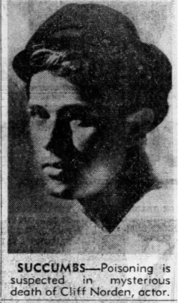 Between 1949 and 1954, Ellen Clevenger rented the property with her son, 26 year old Robert Clevenger. Robert was a former ballet dancer and aspiring actor who was known professionally as Cliff Norden. His friend, Frank K. Lindemann, also an actor, moved in with them. On September 24, 1949, the men decided to have some friends over for dinner. Newspapers dubbed the night “a gay spaghetti party with friends”. However, Robert indicated that he did not feel well and went into his bedroom to lie down approximately 6 p.m. About midnight after all, but one of the guests left, Frank checked on him and found him unconscious, called 9-1-1 and attempted CPR. However, all efforts by the roommate and paramedics to revive him were unsuccessful.