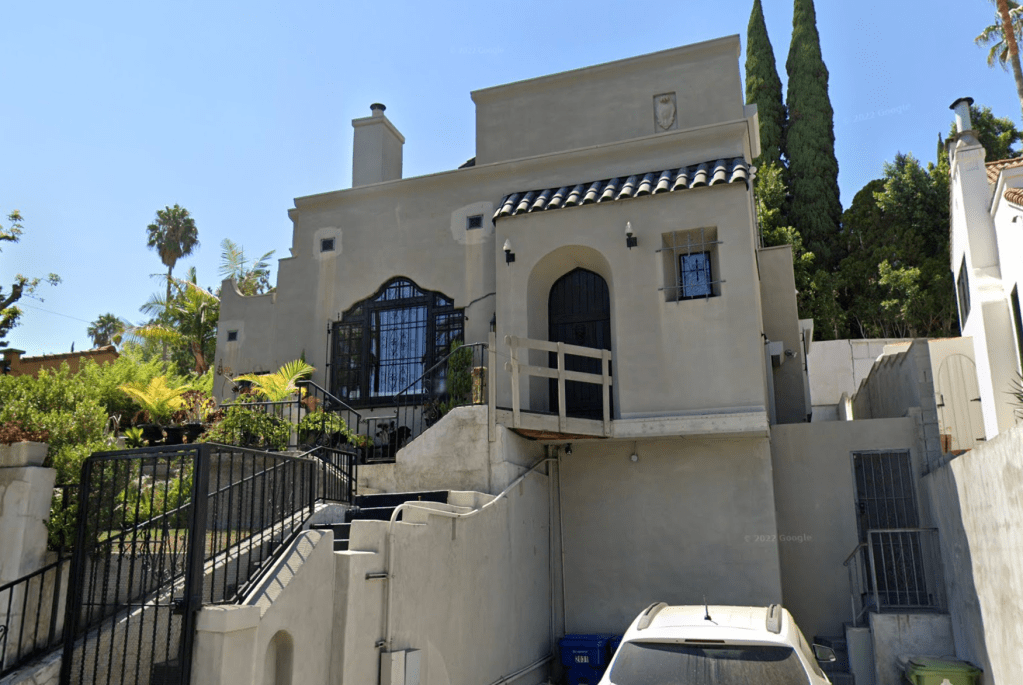 2031 Holly Hill Terrace was built in 1925 by the architectural company, Builder’s Plan Service, contractor W.A. Brown, and owner Max Samuelson. Builder’s Plan Service completed various architecture plans for homes throughout Los Angeles beginning in 1925 and continued until the 1960s. This two-story Spanish style stucco home, has a total of 2,794 square feet, with 3 bedrooms and 2 bathrooms. The home sits on an upslope on Holly Hill Terrace which is located on the southeast corner of Whitley Heights off of Franklin Blvd. There is a recessed arched entry, arched view windows, French doors. and renovations that were completed in 1937. The home, which is currently worth $2.1 million, was last sold in 1981 for $100,000.
