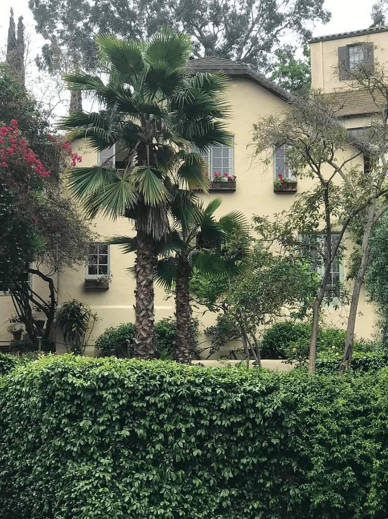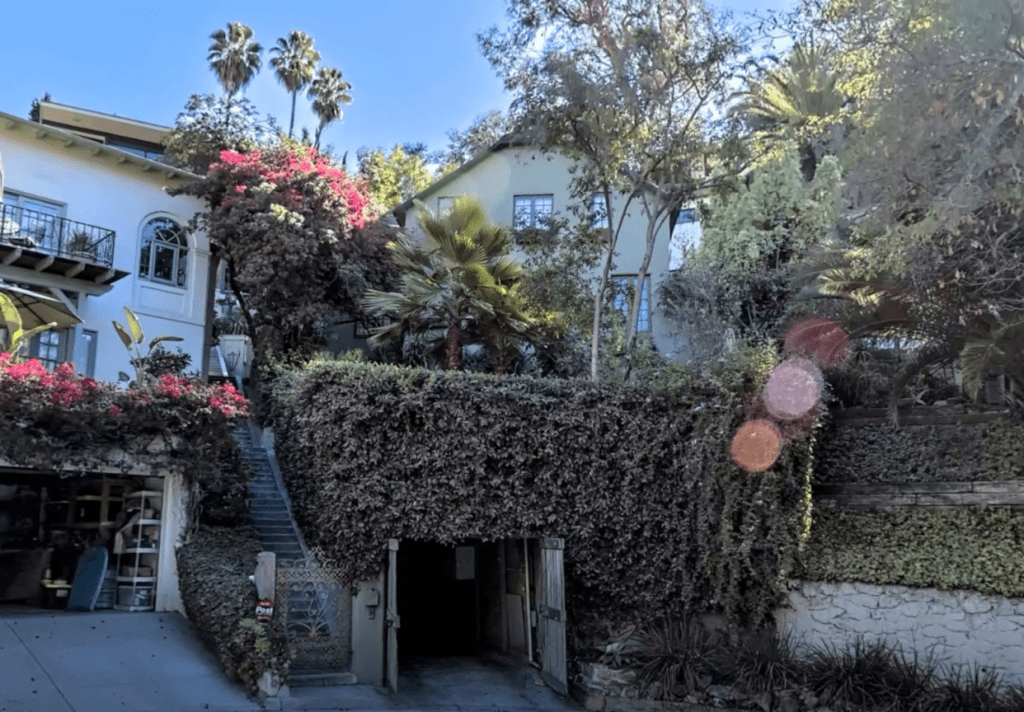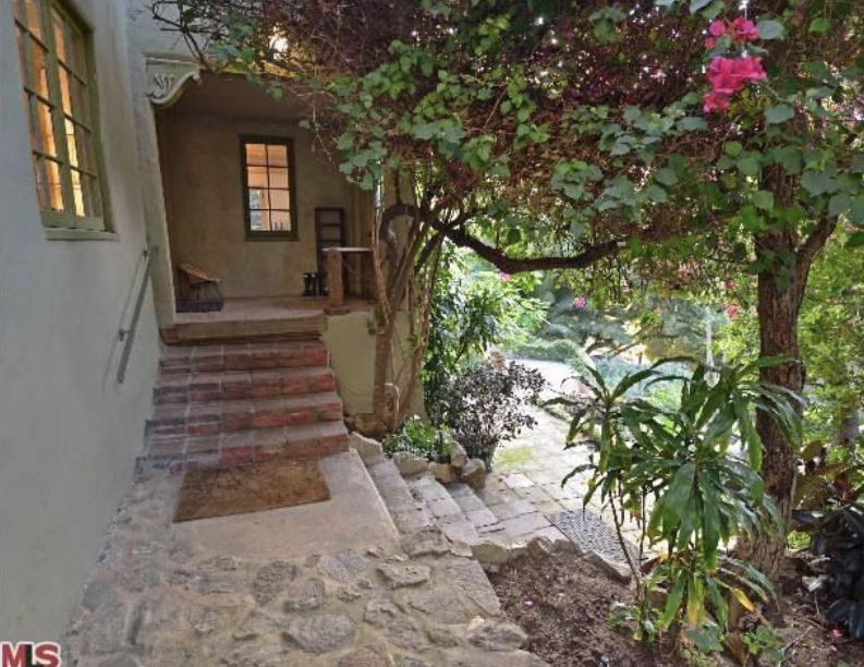6760 Milner Road was built in 1922 (as 6739 Milner Court) by architect Benjamin B. Horner, who also built several other homes in Whitley Heights. The Dutch Colonial home has also been listed as an English Country Cottage that has a total of 1,824 square feet with 3 bedrooms and 1.5 baths. The sole permit was dated in 2011 to reroof the house, although when listed for sale, the advertisements indicated that house has been remodeled. The house sits on an upslope on Milner Drive with Whitley Terrace above (Barbara LaMarr’s former residence can be seen just above 6760 Milner to the right).