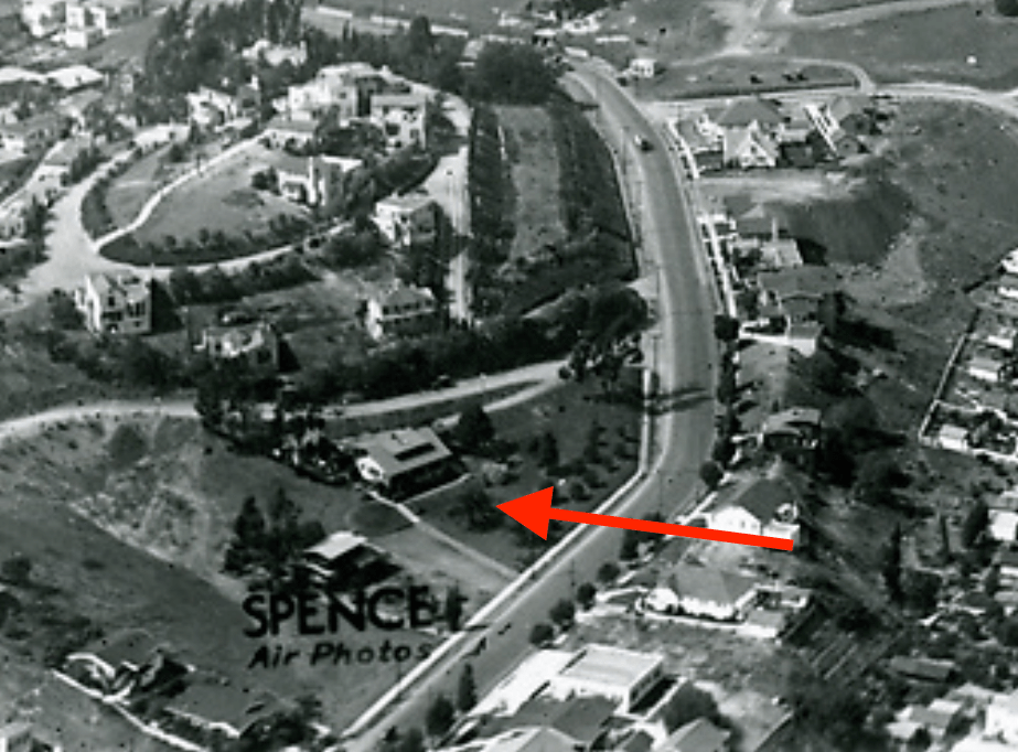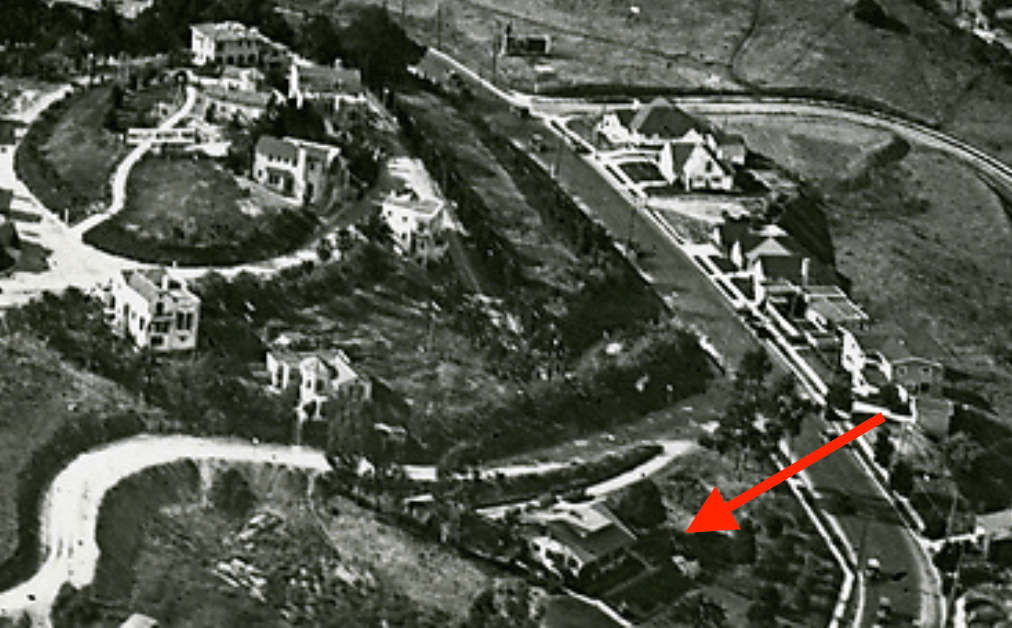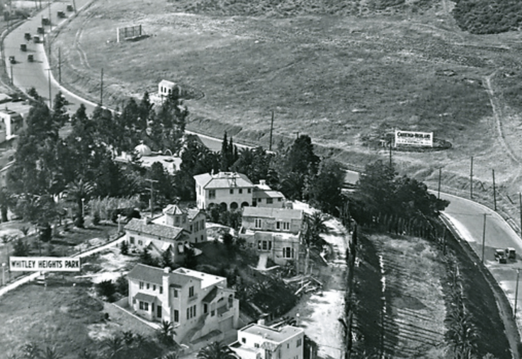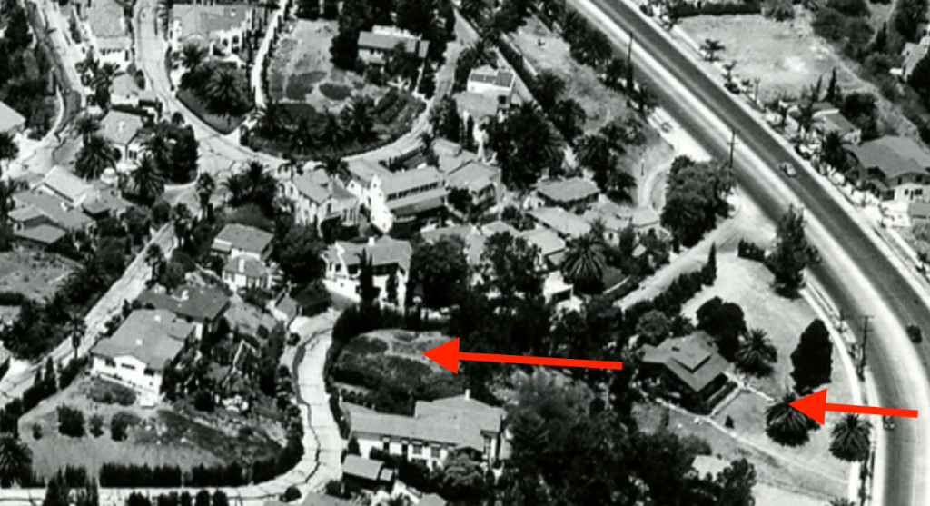 Built in 1910, 2116 Whitley Avenue had a complete make-over when it was relocated from 2127 Cahuenga Boulevard in 1950 by it’s owner, architect Charles D. Lawrence. 2116 Whitley Terrace is on the side of Whitley Heights as Iris Circle. Originally, the two-story bungalow sat on Cahuenga Blvd. just south of Whitley Avenue as pictured below: