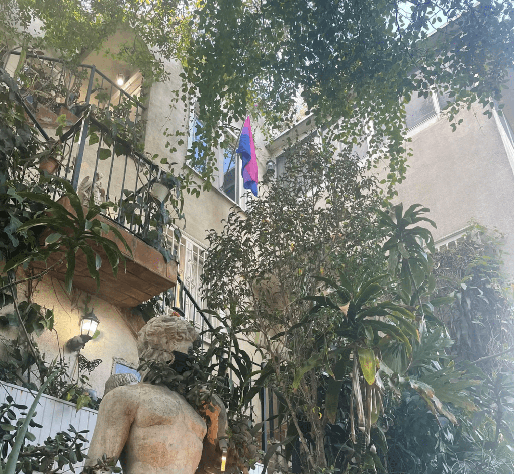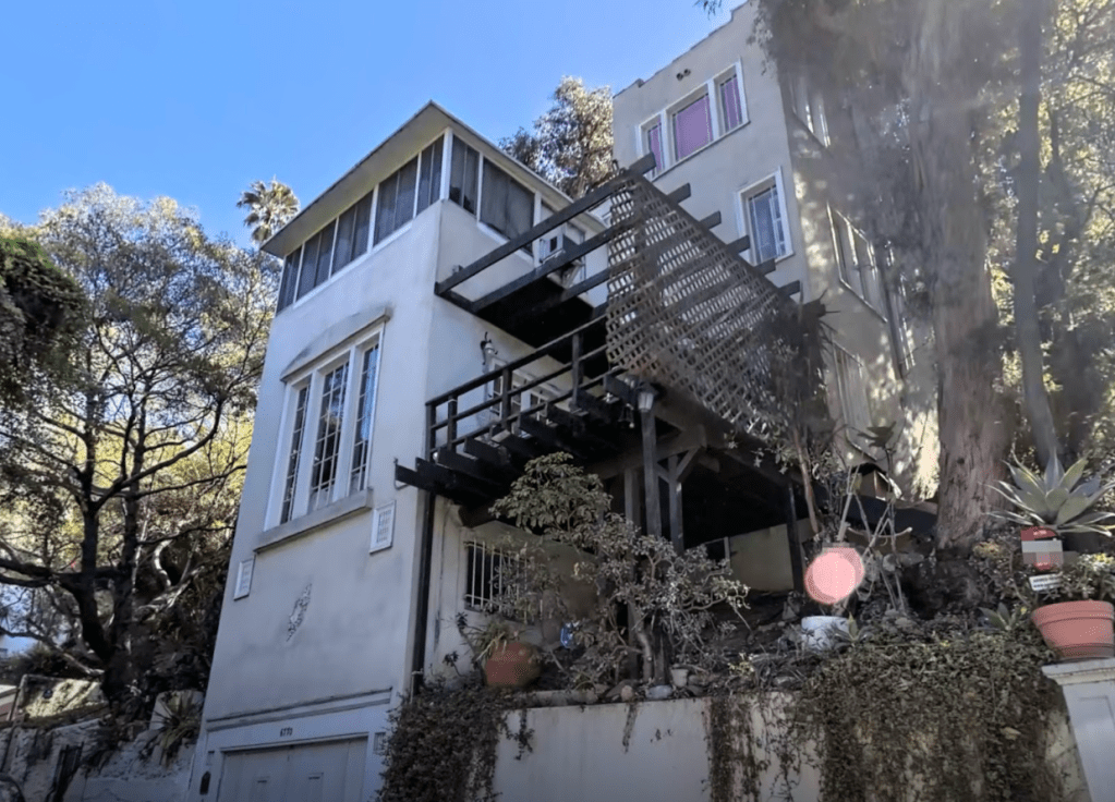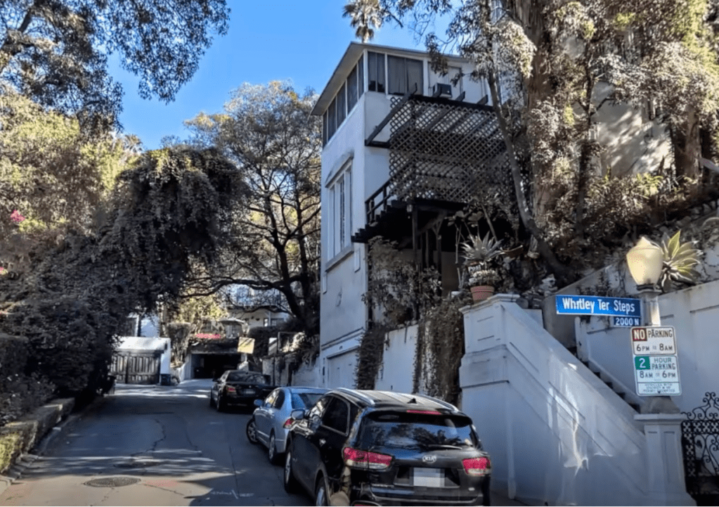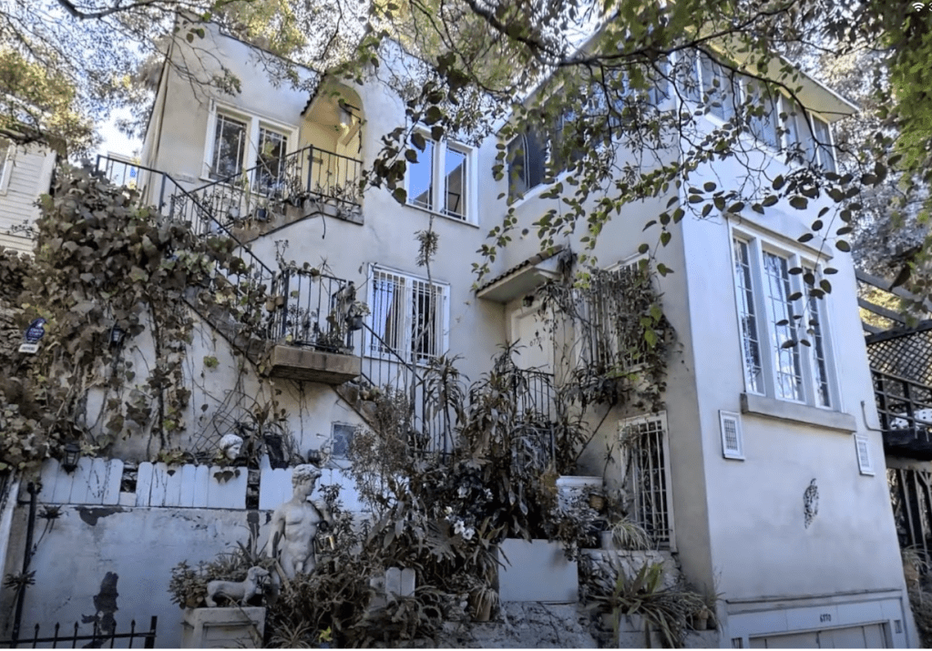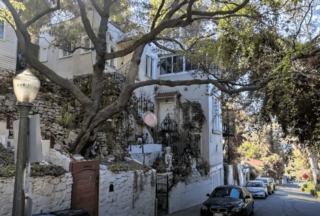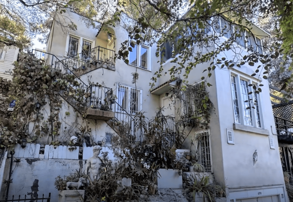 Indie actor and producer Mike Szymanski has owned the property since the 1990s. Szymanki has been an outspoken advocate against Whitley Heights Civic Association’s rules. A 2001 article in Los Angeles Magazine indicated the HPOZ “accused of maliciously meddling in the lives of residents”. Szymanski spent a month painting the exterior of the property and was sent a notice informing him white house paint had an “unacceptable texture” which started by a neighbor complaining. The HPOZ ordered him to repaint the home or, according to a city planner, he would face jail time. The same neighbor complained about flowerpots that were decorating the stairs so he replaced them with redwood flower boxes. However, they were the wrong color so he painted them white. Then HPOZ indicated the flower boxes could not be painted and had to be stained. Szymanski hired a lawyer indicating the gay couple who was complaining about his house was more concerned that he was bisexual rather than the building codes. Szymanski has created the San Francisco style house his own oasis that he is proud of.