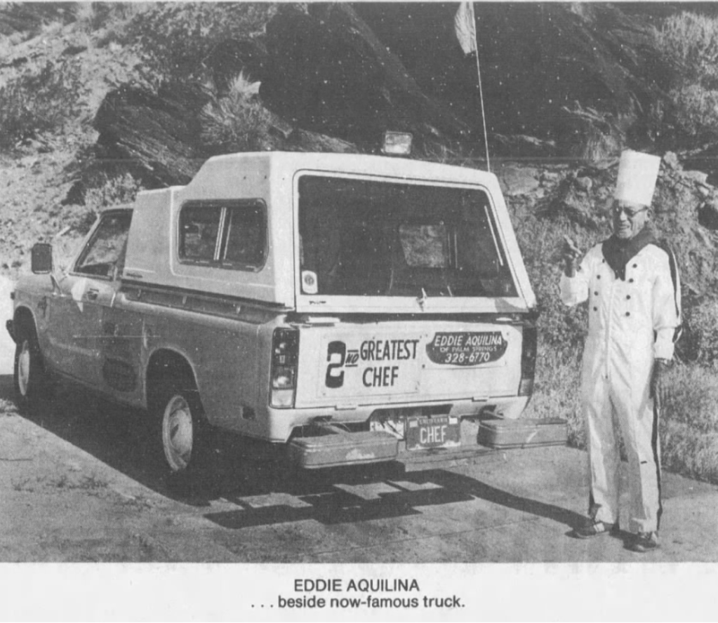 Aquilina moved out to Palm Springs and focused on cooking, becoming a private chef to Mae West, Humphrey Bogart, Susan Hayward, and Liberace. He was also the head chef at Elton’s restaurant in the Palm Springs area during the 1950s. For the next 30 years he taught cooking classes and opened his own “Dial-a-Chef” business. Aquilina died at the age 86 in 1983.