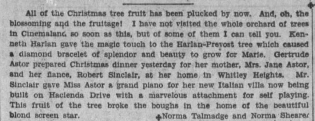 Although Astor never married or had any children, it was announced that she was engaged to Robert Sinclair, the brother of oil tycoon and race horse owner, Harry Sinclair, while she was living in Whitley Heights. It appears that the two began the engagement in 1925 and remained together until at least 1927. Then the engagement seemed to end with no explanation at all.
