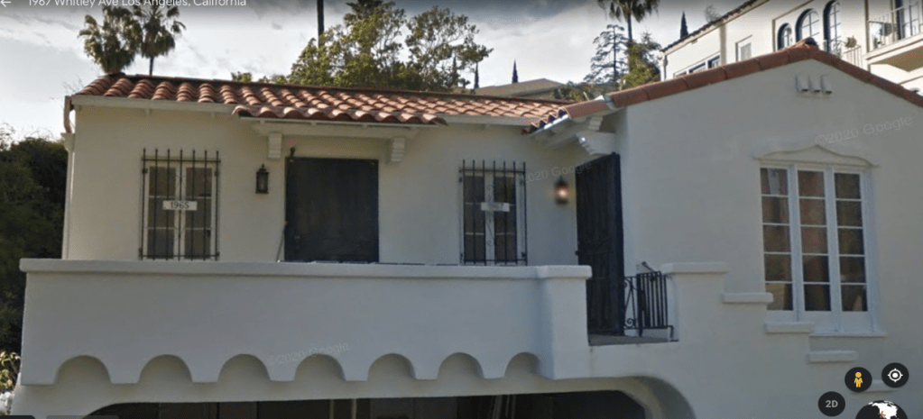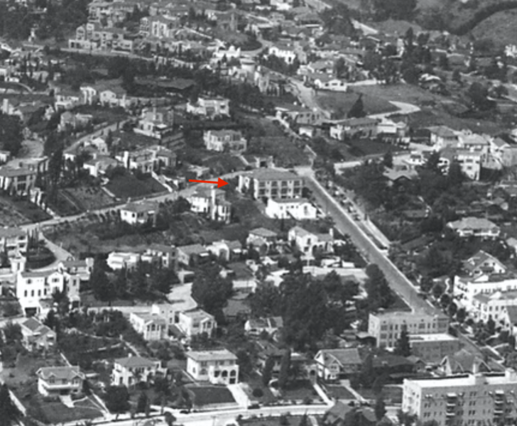 In 1928, Taylor married for the second time; the 59 year old married a 53 year old widow named Virginia Rice who had also lived in Oxnard so they may have known each other when Taylor lived in Oxnard. They married in September and by next May 1929, Rice died at age 54. Taylor decided to hire an apartment manager as he was 60 years old and now grieving wife number two. Thirty-eight year old Lillian E. Koch moved into 1969 Whitley Avenue, one of the apartments next door and took the job as apartment manager. At that time, director Louis King, publicist Minnie F. Todd and her daughter, actress Lola Todd were all renting from the Taylor Apartments. Below is the Taylor Apartments circa 1920s with 1965-67 Whitley Avenue seen just below on the corner of Whitley Terrace and Whitley Avenue.