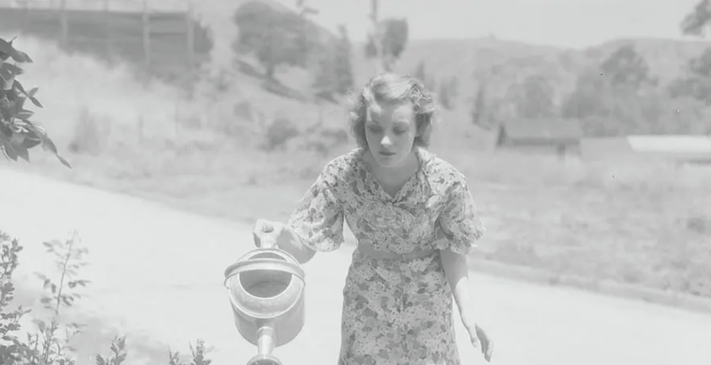 After O’Sullivan and English moved out, Cyril Hume, writer for RKO studios, and his wife, actress Helen Chandler rented the home briefly in 1934 until they separated. The two were married on February 3, 1930, when Hume was working at MGM, where he wrote the screenplay for “Trader Horn” in 1931. For a time, the two kept their marriage a secret, eventually settling into a home on Kings Road in the Hollywood Hills with Hume’s 5 year old daughter, Barbara, by a previous marriage. Helen turned out to be somewhat unreliable and unstable, developing a drinking problem and having trouble remembering to pay her bills. During their 4 year relationship, the two move around: Santa Monica, Hollywood Hills, this house and one across the street in the French Village. In 1950, Helen was in an apartment fire after falling asleep with a lit cigarette on Whitley Avenue which caused severe burns on her face and finished her acting career. Chandler died in 1965 after complications due to surgery. Hume, who had married twice after Chandler, died in 1966 in his home in Palos Verdes at the age of 66. Below is Chandler on Arbol Drive watering the flowers in front of the home.