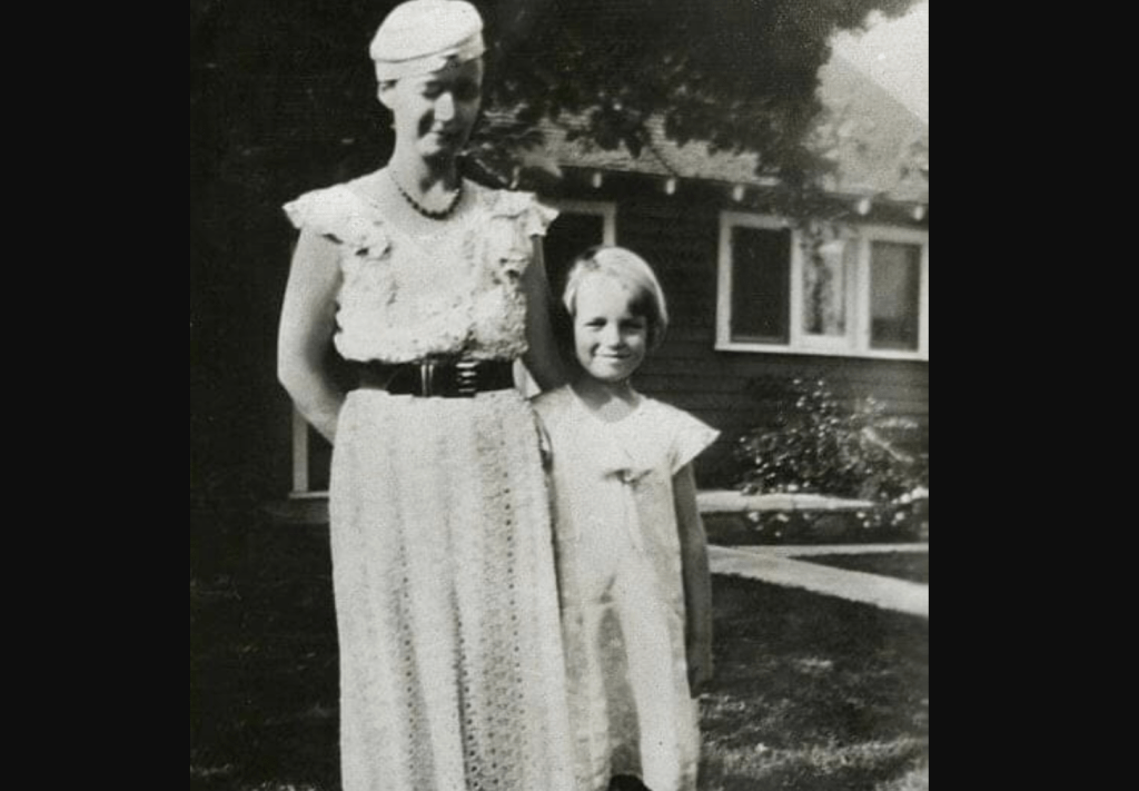 Baker purchased a white grand baby piano in which Norma Jean would take lessons on, often hearing the music from the Hollywood Bowl just over the hill. This house had six rooms, including 4 bedrooms, a large living room with a fireplace, and a back porch. Baker bought all of the furniture at an auction including a white baby grand piano that had been owned by actor Frederic March. Below are Gladys and Norma Jean Baker (Marilyn Monroe) in front of the house on Arbol Drive circa 1933-34.