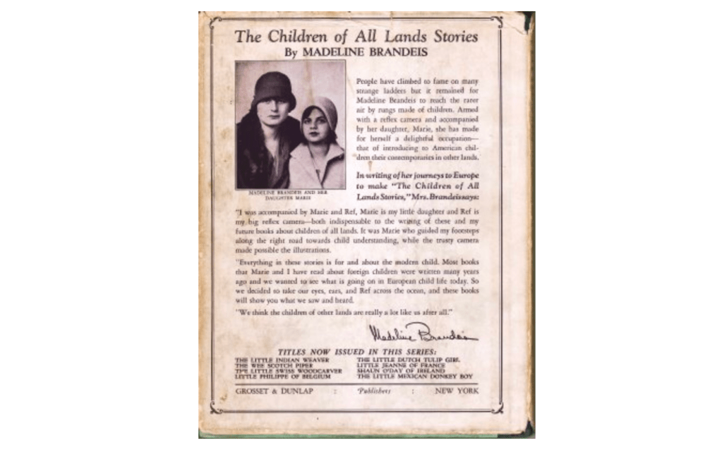 When Brandeis moved to Hollywood, she produced and financed “Not One to Spare” (1924), and shortly thereafter formed her own production company, Madeline Brandeis Productions, under which she produced “The Shining Adventure” (1925). Both films were about children. In 1927, Brandeis produced an unusual short fiction film, “Young Hollywood”, which featured the children of screen stars- Erich von Stroheim, Jack Holt, Tim McCoy, William Desmond, Wallace and Dorothy Davenport Reid, Hobart Bosworth, Reginald Denny, and Pat O’Malley. She even got her daughter, Marie, involved with writing as she wrote and illustrated her own children’s book at the age of 7 in 1926.