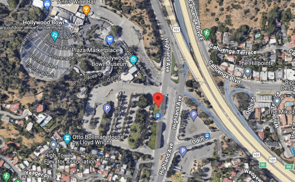 Below, the Hollywood Bowl can be seen in the upper right side of the picture.