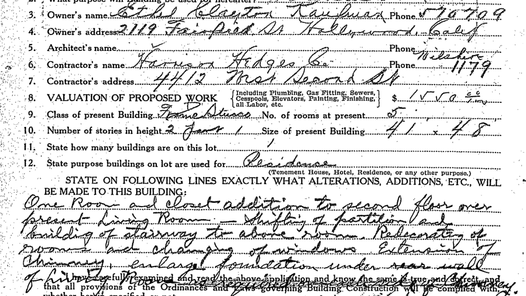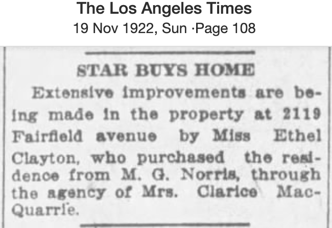 As for 2119 Fairfield Avenue, its history vanished after Clayton lived there with the last known date of 1927, according to the Los Angeles City Directory.