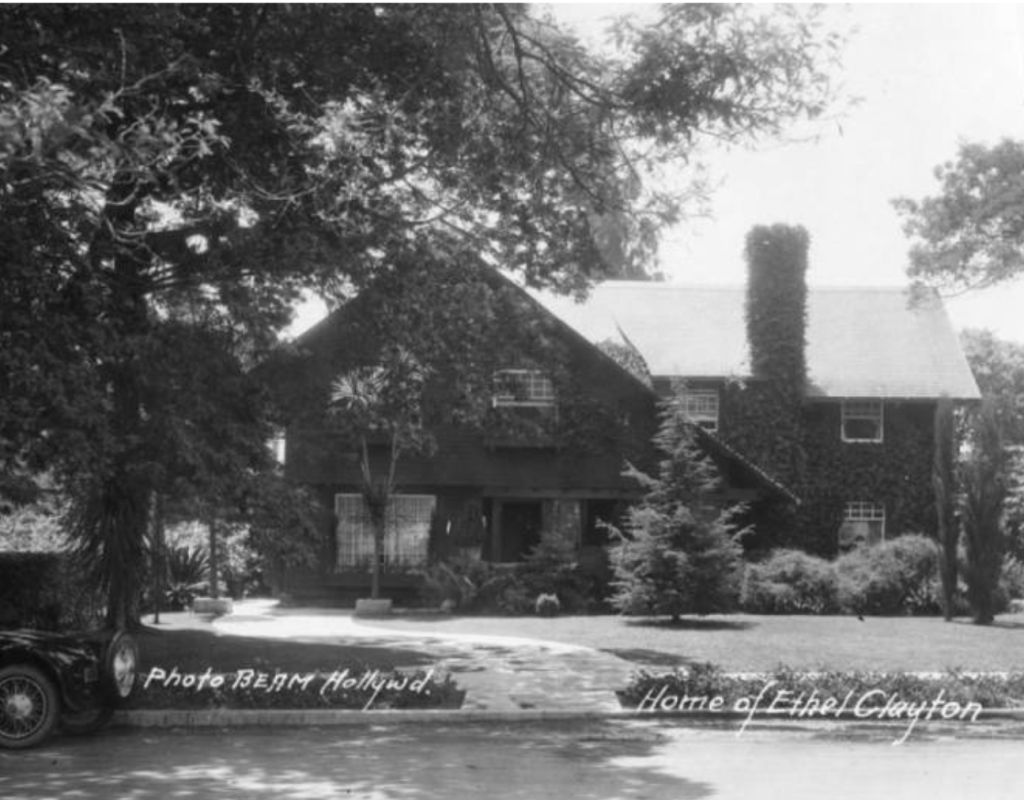Ethel Clayton was born Ethel Blum in Champaign, Illinois in 1882 and moved to New York to pursue her acting career in theater, meeting actor/director Joseph Kaufman and marrying him in 1914 in Philadelphia. Kaufman died on pnemonia in a hospital in New York during the Spanish flu epidemic in 1918. Devastated, Ethel dived into her work and got a contract with Paramount renting a house in Venice Beach in 1918. The following year, Ethel moved to Whitley Heights at 6662 Odin Street with her mother, Mary Blum, and her brother, Donald Clayton, an aspiring actor and dancer. After renting the Odin Street home for a year, Clayton purchased another Hollywood home located at 6929 Hawthorn Avenue (see below):