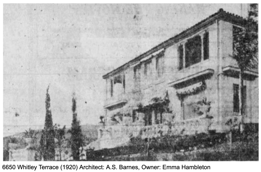 In return, Hambleton hired architect A.S. Barnes to construct a house similar to that of Whitley’s house which was built just below on 6650 Whitley Terrace.