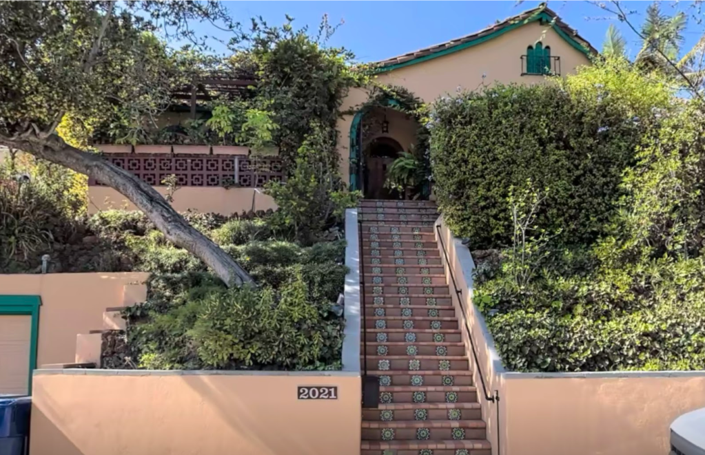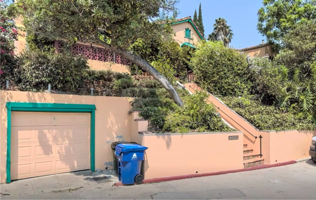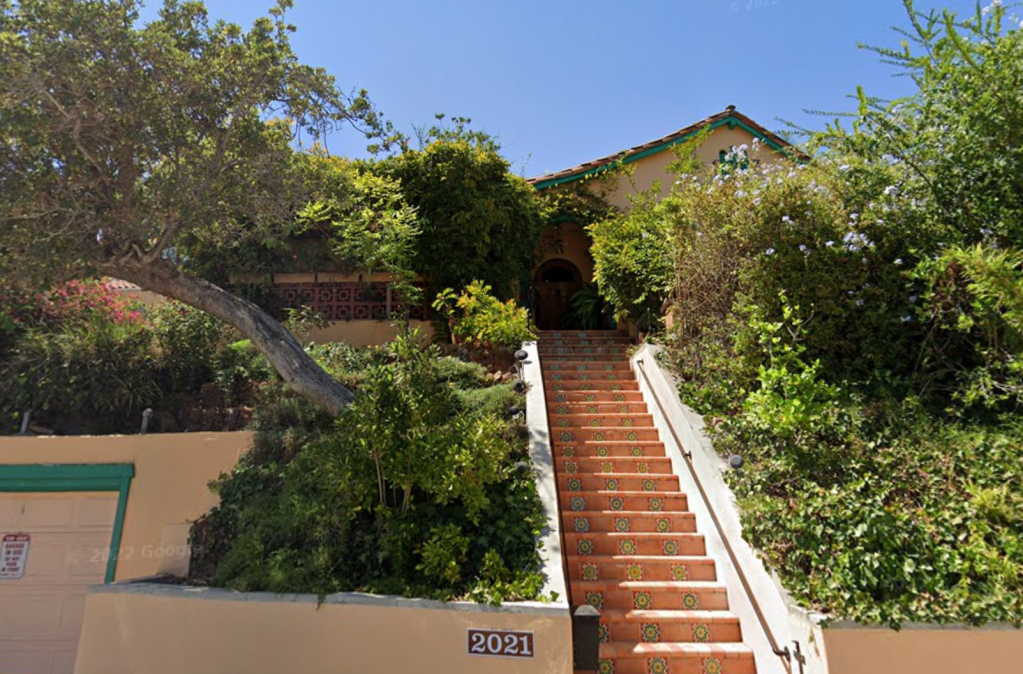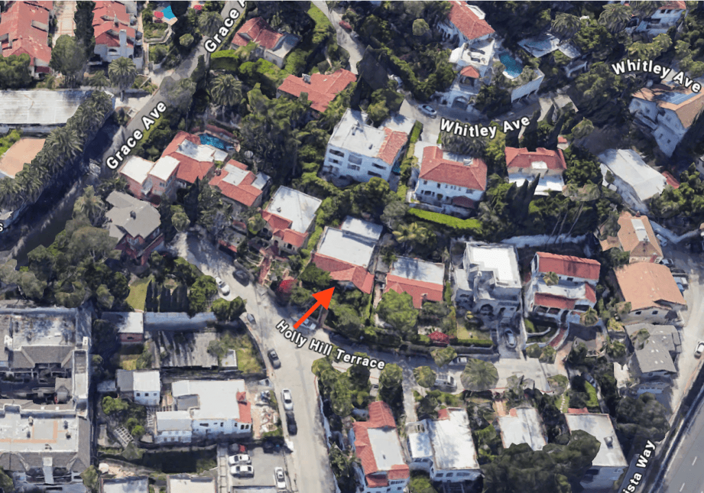 2021 Holly Hill Terrace was built in 1922 with the original address listed as 2005 Holly Hill Terrace. Owner Ted McClellen hired Hollywood Architectural Service Company to design and construct the 1,766 square foot house that has 3 bedrooms and 2 bathrooms. The house is similar to most of the homes on Holly Hill Terrace as Hollywood Architectural Service designed and built the majority of the homes on the street during the 1920s. The one story house sits on an upslope directly behind Whitley Avenue and there is a one car detached garage on the left side of the property.