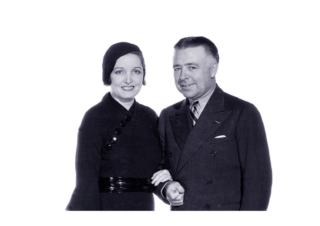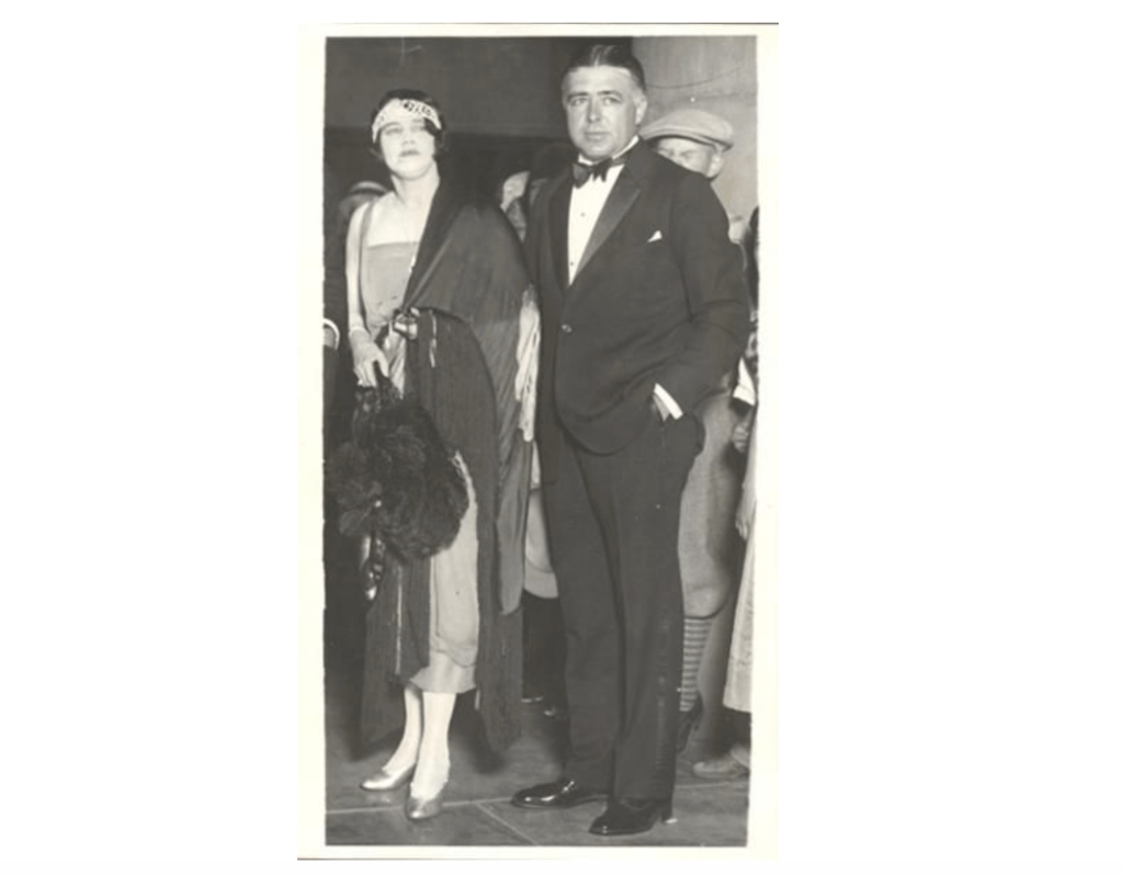 Brown was married a total of four times. His first marriage was to Paul Herndon Pratt in 1913 in Washington D.C., which lasted until their divorce in 1920. The couple produced a daughter, Adrienne Brown. Brown filed for divorce because he was “tired of being married”. Shortly after their daughter was born, he sent her on a trip to visit her family. Three months later, she borrowed money from his parents to return to him in New York and apparently Clarence was furious at her return. He sent her back to her family in Washington DC and then filed for divorce charging desertion. The courts gave Pratt custody of their daughter. His second marriage was to Ona Wilson (both pictured below), which lasted from 1922 until their divorce in 1927.