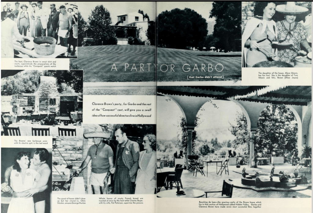 At six, Clarence Brown holds the record for the most Academy Award nominations for Best Director without a win. He was nominated for Anna Christie (1930), Romance (1930), A Free Soul (1931), The Human Comedy (1943), National Velvet (1944) and The Yearling (1946). Brown had directed 6 Greta Garbo films: Flesh & the Devil (1926), A Woman of Affairs (1928), Anna Christie (1930), Romance (1930), Inspiration (1931), and Anna Karenina (1935), as he got to know Garbo’s aloof personality. He even threw her a party at his Calabasas house in 1937, which she failed to show up for (see below).