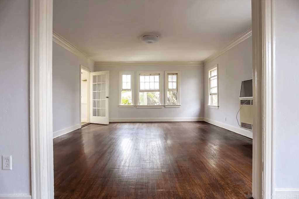 Below is the upper unit in the duplex with much of its original structure in place. The entire property last sold in 2016 for $900,000. The house and each unit contain two bedrooms and one bathroom.