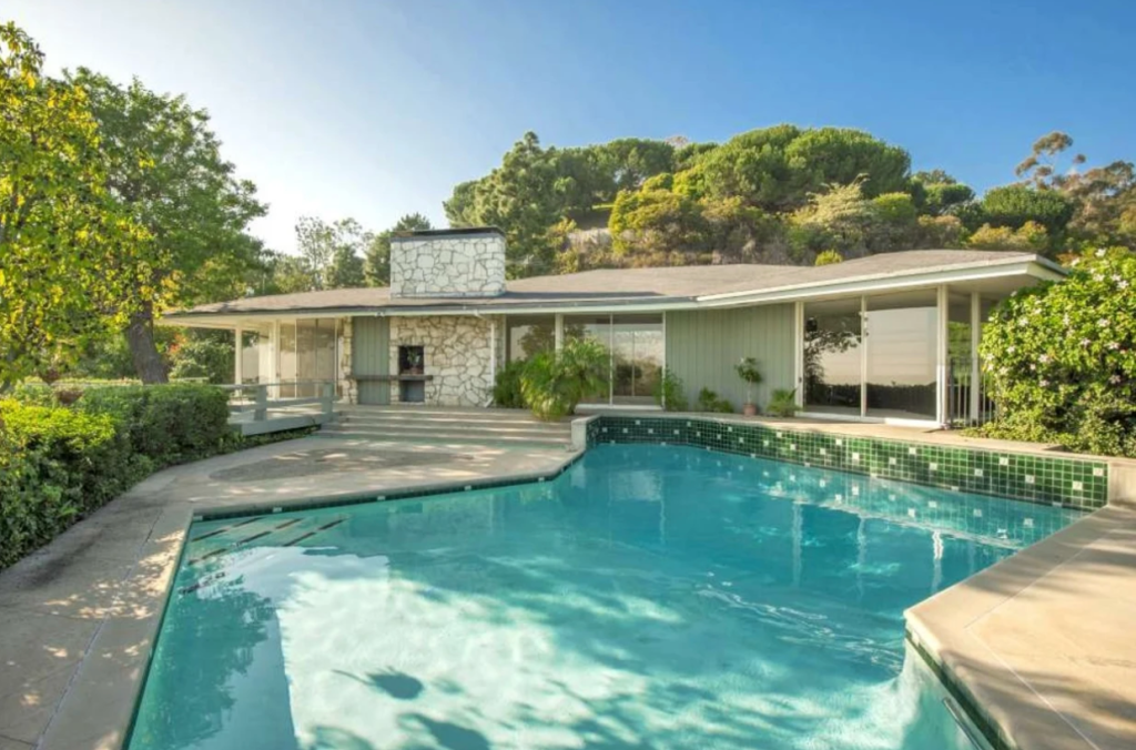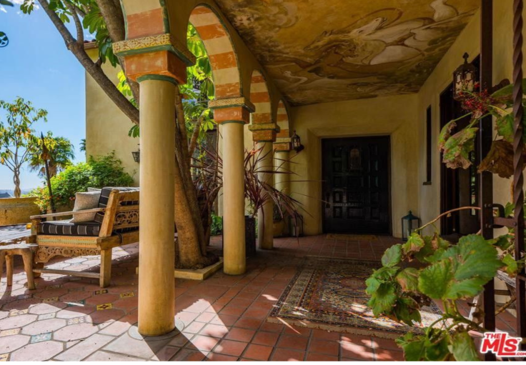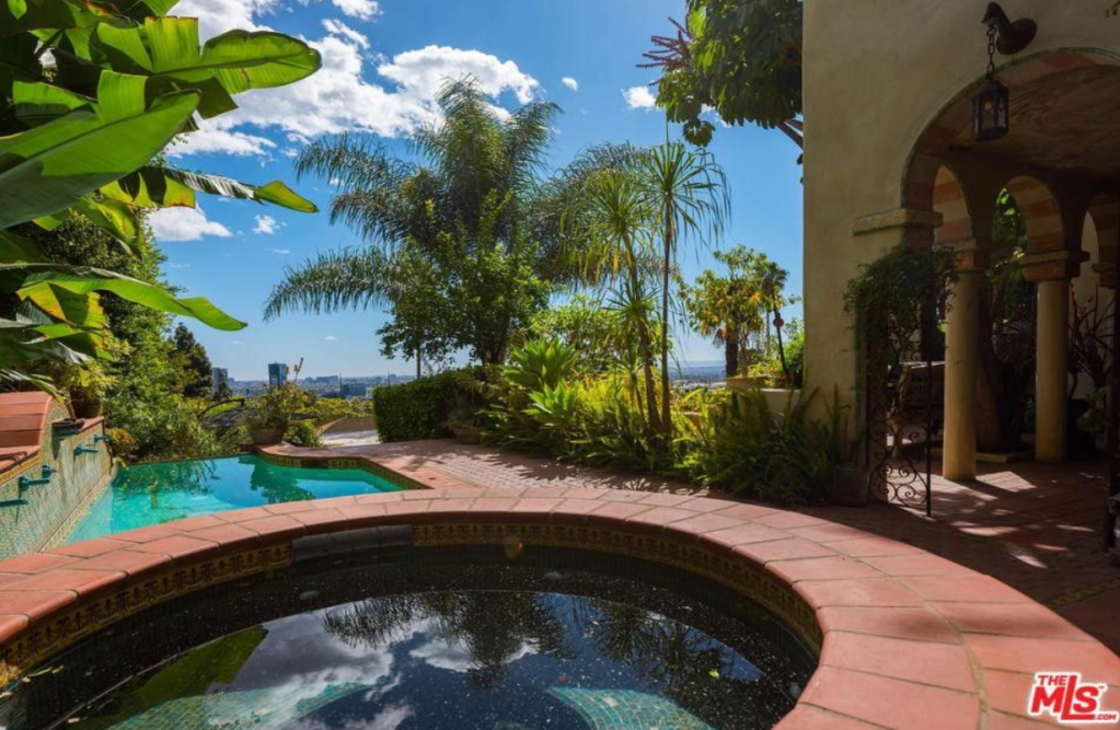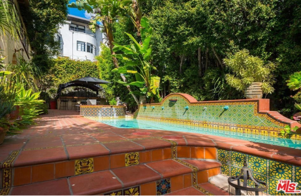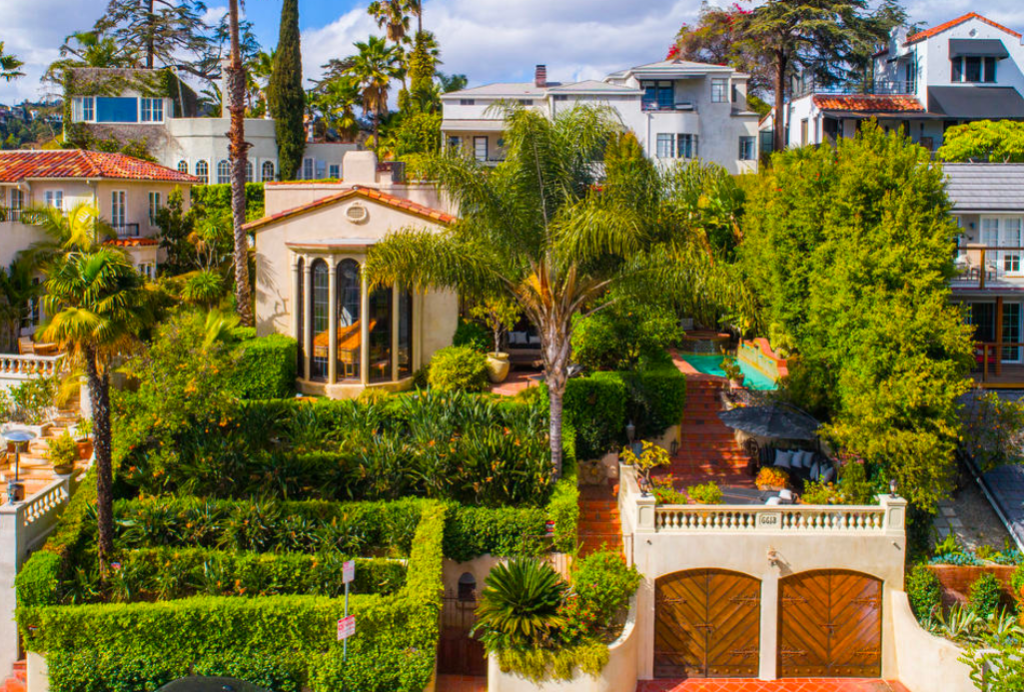 6613 Whitley Terrace is a two story Mediterranean home that was built in 1922 by architect, Arthur S. Barnes, the leading architect of Whitley Heights during the 1920s. The 2,720 square foot home has 4 bedrooms and 3 bathrooms with a detached two-car garage and a heated pool on the side of the house. The house is currently for rent for $12,500 per month.