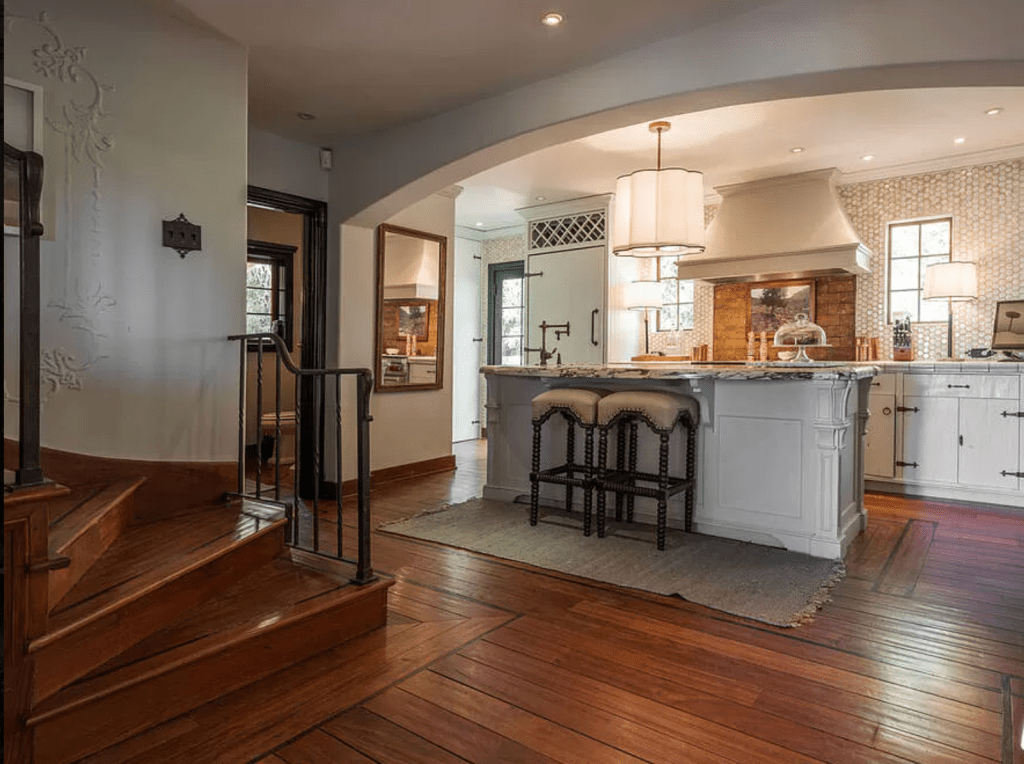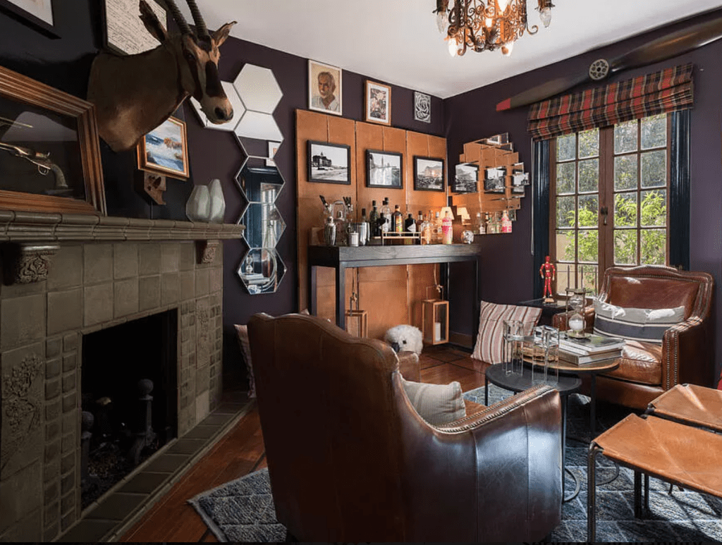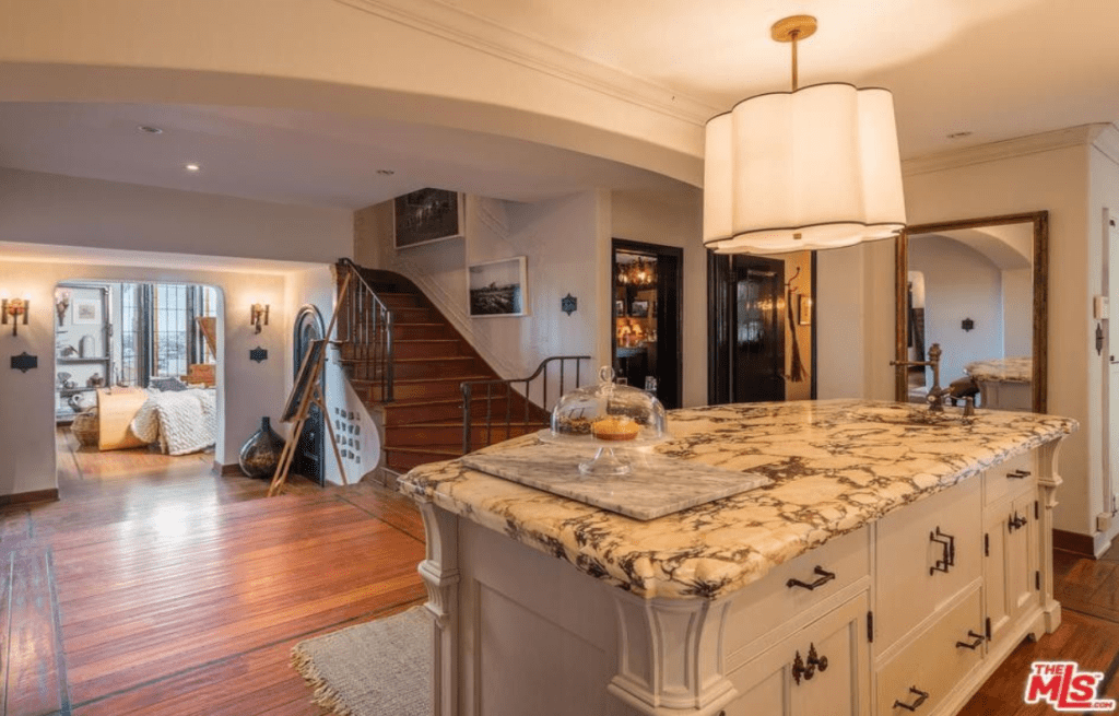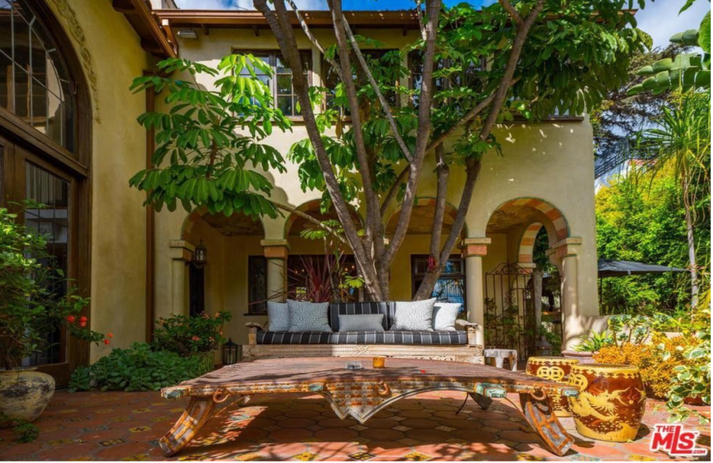 6613 Whitley Terrace is a two story Mediterranean home that was built in 1922 by architect, Arthur S. Barnes, the leading architect of Whitley Heights during the 1920s. The 2,720 square foot home has 4 bedrooms and 3 bathrooms with a detached two-car garage and a heated pool on the side of the house. The house is currently for rent for $12,500 per month.