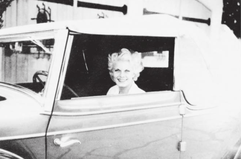 Harlow continued to get voice lessons from Kayser when he moved to Whitley Heights. Above, Harlow was seen in her vehicle in front of 6613 Whitley Terrace and was often at the house for her lessons. Her presence in Whitley Heights started rumors that she lived down the street at 2015 Whitley Avenue and that she lived in another house that had been relocated to Huntington Beach in the early 1950s in order to avoid being demolished when the freeway was built.