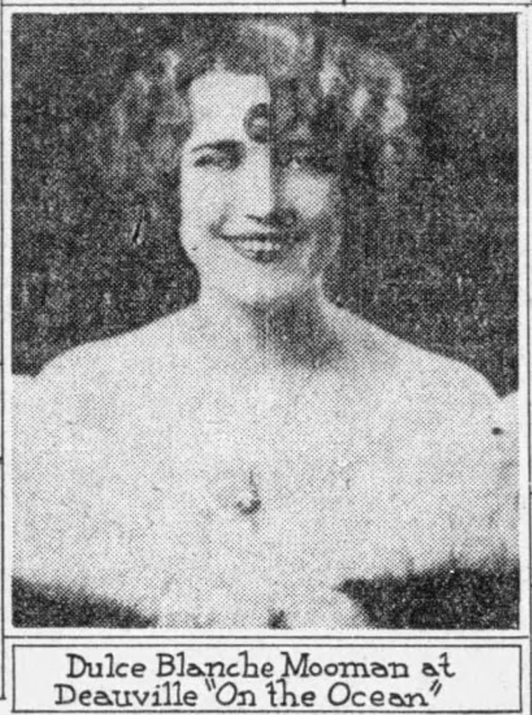 In April of 1927, Mooman was hired as part of Patsy Lyons act at the Rialto in Tampa. A year later, the prima donna had traveled to Europe, Nassau, and New York to perform before she was hired to perform at the Deauville Hotel in Miami in early 1928. In July of 1932, 23 year old Mooman married 25 year old Granville Briant, a US Naval Academy graduate and part of the Air Fleet Detachment in Coronado, California. After they married in Yuma, Arizona, she moved to San Diego where he was stationed.