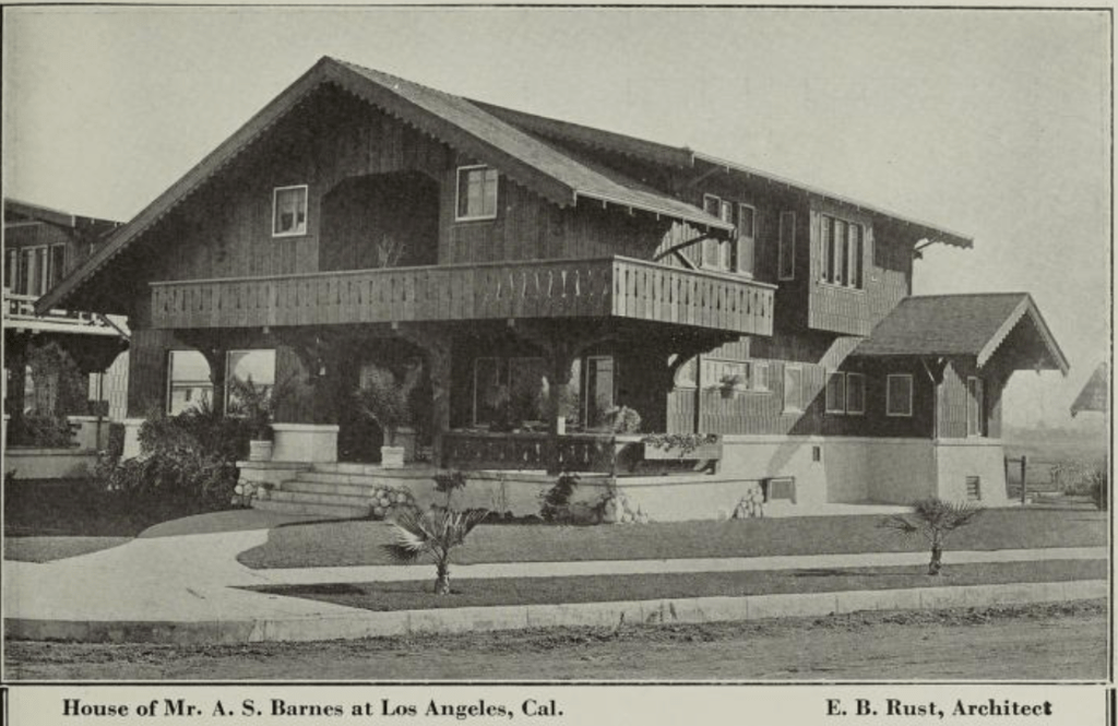 In 1928 owners Jacob Borstein and Louis Rose hired architect Edward B. Rust to construct a 5 story apartment house with 54 units and a partial basement. Demolished was a 2 story house on the lot which was built in 1912. During the early 1900s, Rust was in business with the architect of Whitley Heights, Arthur S. Barnes and even built his house, a chalet style house in Los Angeles (pictured below).