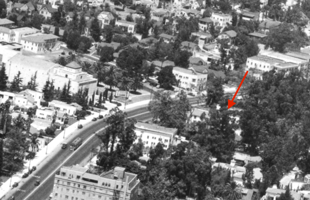 In 1929, famed architect Harry McAfee (1888-1960) and movie set designer resided at 2046 North Highland Avenue. For 30 years, McAfee worked as a set designer and art director for MGM. During the 1920s, McAfee designed several residential homes in the area including 2059 Watsonia Terrace (1924), 6708 Milner Road (1926), and 6740 Milner Road (1928) in Whitley Heights. Below, McAfee is on the set with actress Alice Brady on the set of “Should Ladies Behave” in 1933.