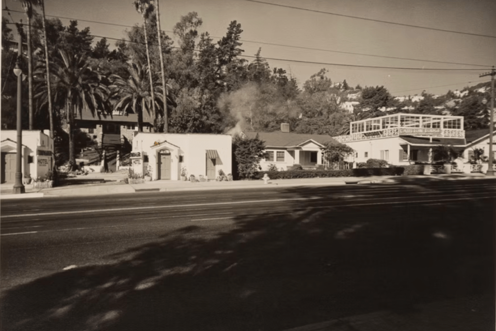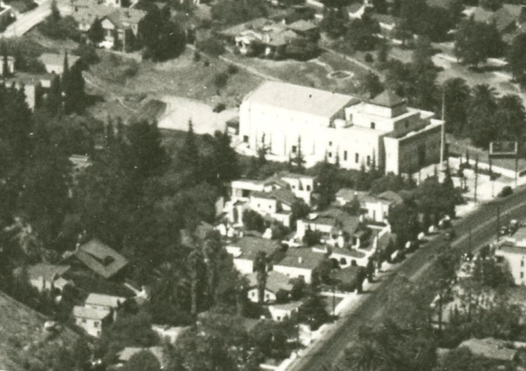 Between Franklin Avenue and Camrose Drive, North Highland Boulevard used to be lined with single-family residences or duplexes during the 1920s. In 1919, widow Bertha J. Barker decided to build 7 duplexes located at 2011 to 2033 North Highland Boulevard and called the bungalow court “Los Nidos Court”. In 1929, the American Legion Hollywood Post would be built to the right of the bungalow court.
